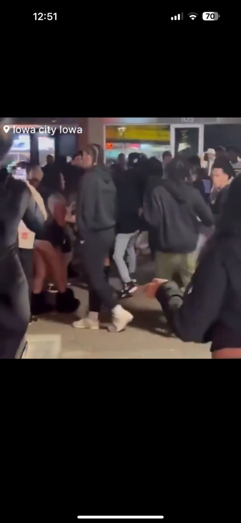 Several people have been hospitalised after gunfire broke out during a large-scale street fight at a popular outdoor mall close to the University of Iowa in the early hours of Sunday morning, with dramatic footage of the violence circulating widely on social media.