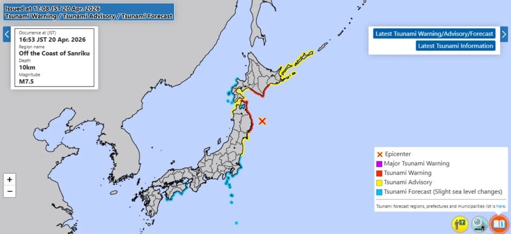 The tremor was detected at approximately 4.53pm local time, originating around 100 kilometres off the Sanriku coast at a shallow depth of ten kilometres. The Japan Meteorological Agency initially recorded a preliminary magnitude of 7.9 before revising the figure, and immediately issued warnings of waves of up to three metres expected to strike coastal areas across northern Japan. The shaking was felt as far south as Tokyo.