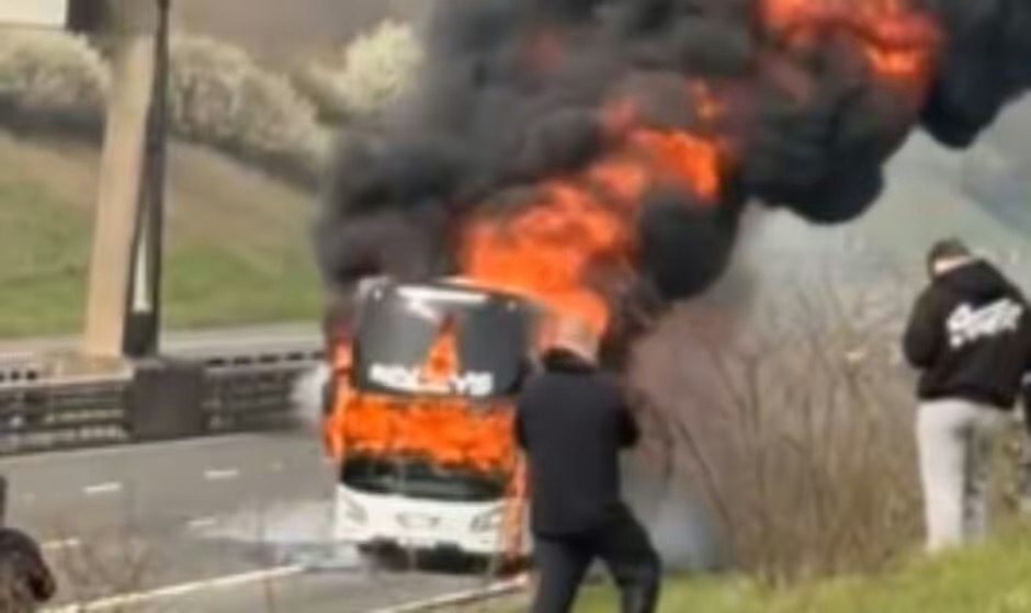 All passengers and the driver were safely evacuated from the Ridleys coach before firefighters arrived to tackle the blaze, which broke out between junctions T3 and T2 on the M6 Toll southbound near Birmingham. Footage of the burning vehicle spread rapidly on social media, with onlookers watching from a nearby hillside as flames engulfed the double-decker. Traffic came to a standstill across all lanes while emergency services dealt with the incident.