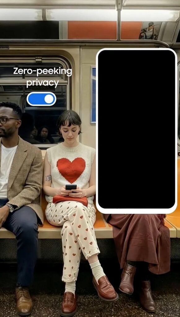 The South Korean tech giant shared a YouTube video demonstrating the feature with the caption “For your eyes only,” showing how the privacy display can be activated instantly to make the screen appear completely black to anyone viewing from the side.