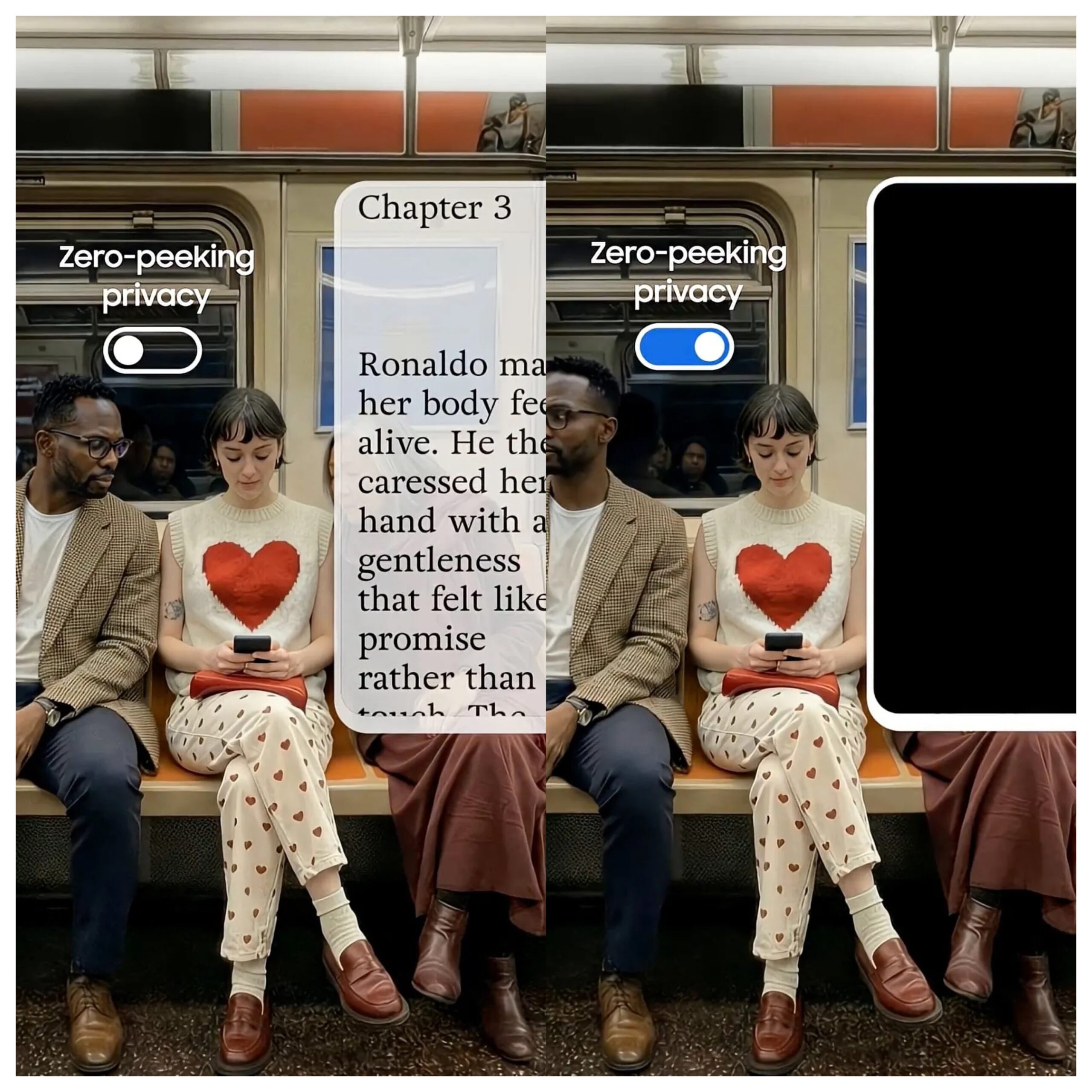The South Korean tech giant shared a YouTube video demonstrating the feature with the caption “For your eyes only,” showing how the privacy display can be activated instantly to make the screen appear completely black to anyone viewing from the side.