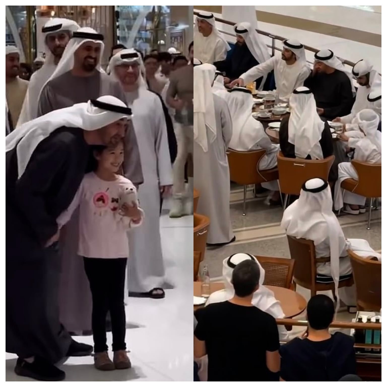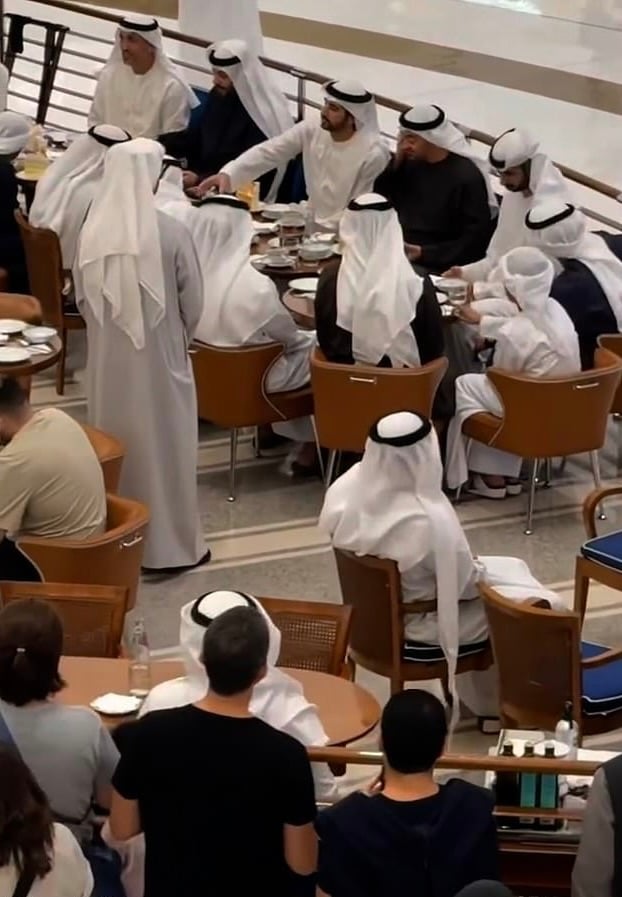 Mohammed bin Zayed, 64, and Crown Prince Hamdan bin Mohammed Al Maktoum, 43, were seen at Dubai Mall — located in the city’s downtown area beside the Burj Khalifa — where they sat for coffee and pastries at café Cipriani Dolci alongside other senior Emirati figures before strolling through the busy complex.